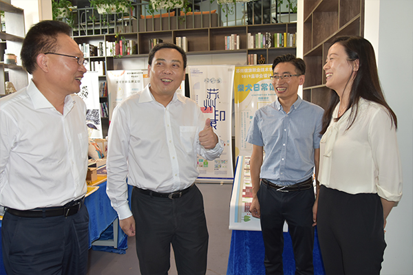 9月10日是第35个教师节,下午,太仓市委副书记、市政法委书记钱文辉,市政协主席邱震德,在市委办、政府办、市教育局等相关部门负责人陪同下来到我校,向教职员工送来节日的祝贺。 钱文辉一行首先来到艺术学院产教深度融合平台,参观了近年来艺术学院深化产教融合成果展示,与正在这里召开庆祝教师节座谈会的老师亲切握手,他说,健雄学院教师为企业培养技术技能人才作出了突出贡献,特别是学校实行双元制教育人才培养模式,培养的人才深得德资企业的欢迎,这种人才培养模式也得到了行业内肯定。钱文辉与现场的产业教授、新来的博士亲切交谈,希望他们发挥专业特长,热爱职业教育,为太仓职教事业发展作出贡献。 随后,钱文辉、邱震德一行来到正在进行工程扫尾的新宿舍楼建设现场,工程负责人汇报了工程进展情况。钱文辉说,宿舍楼建设虽然进行到工程扫尾阶段,但是,工程质量不能马虎,要严格按照流程、工艺施工,抢抓工期,确保月底施工结束,不耽误投入使用。(图/文 何寿林)
