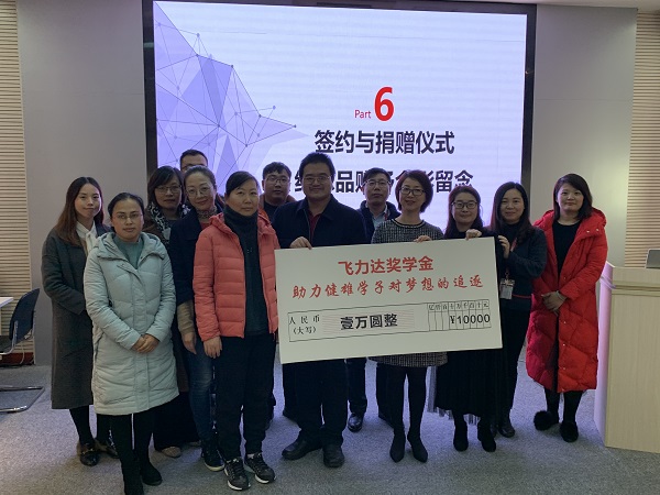 江苏飞力达是国内知名物流企业,与商学院有着长期密切的校企合作关系。在开班仪式上,江苏飞力达国际物流股份有限公司还为2019级“健雄—飞力达现代学徒制班”提供1万元的助学金。(图文/孙振国 审核/苏志勇)