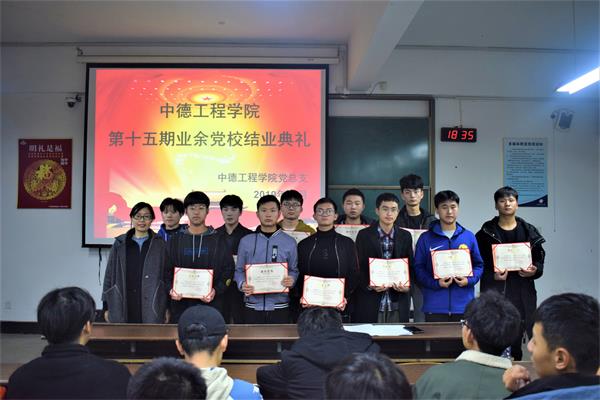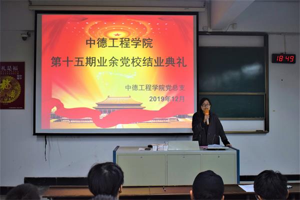 12月15日晚,中德工程学院第十五期业余党校结业典礼在C1-101举行,业余党校全体学员参加典礼。
