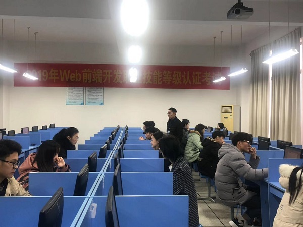 12月21日,教育部“1+X”Web前端开发职业技能等级试点考试在D2-307举行。软件与服务外包学院29名学生参加考试,副校长周晓刚巡考。