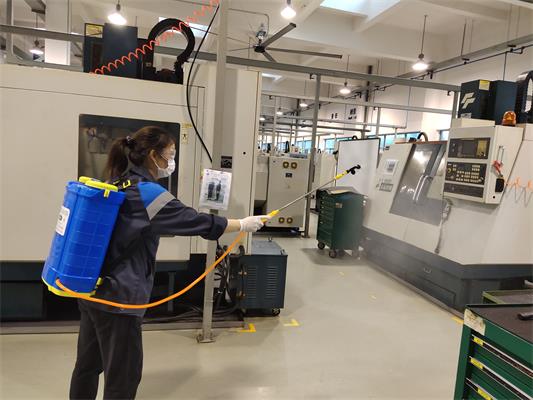自学生返校复学以来,为确保线下实训教学工作安全有序开展,中德工程学院安排李强、陆静红两位老师负责对中德培训中心所有教学场所和一期D1楼所属实训场室定期进行消毒工作。消杀范围涉及39个场室及公共逃生通道,做到每天“一消毒一保洁一检查”,为广大师生创设健康、整洁的教学环境。