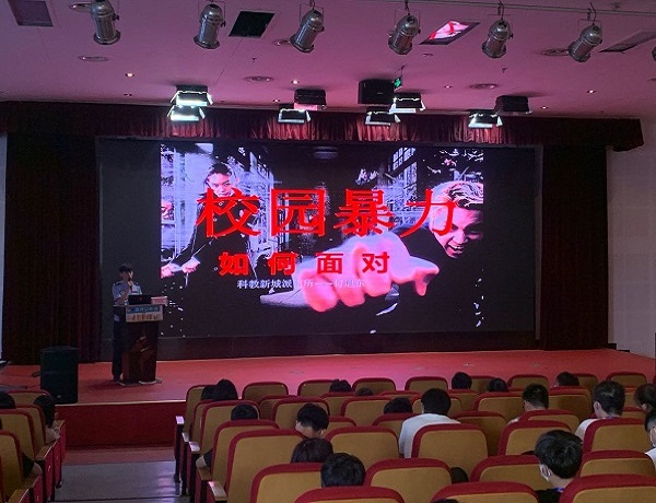 随后,付旭东图文并茂、深入浅出地为同学们剖析了校园暴力的因素、表现形式、施暴对象特征以及如何应对校园暴力。教导同学们在日常相处中要互相关心,多多包容,并强调在遇到校园暴力时,切勿意气用事,以暴制暴,一定要及时将情况向家长、老师反映,必要时也可以拨打110。