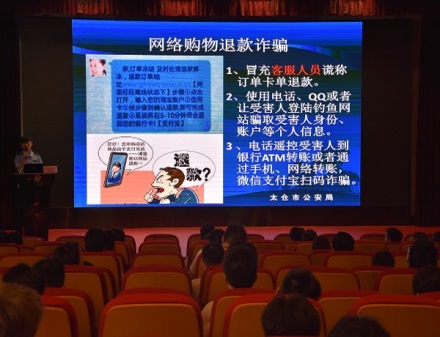 首先,付旭东民警就常见的电信诈骗类型,如何防范电信诈骗作生动阐述,并结合发生在健雄学院的真实案例,介绍了网络交易诈骗、网络购物退款诈骗、网络兼职诈骗及冒充QQ好友诈骗的特点,提醒同学们不要妄想“天上掉馅饼”,要沉着应对陌生号码发来的诱惑信息,注意保护好个人隐私,避免出现财产损失。