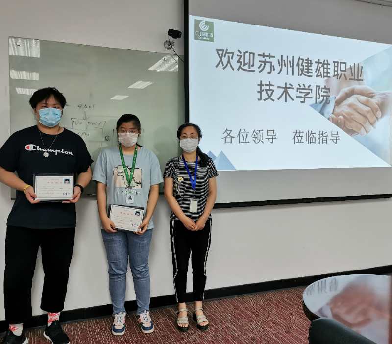 6月19日,软件学院书记周玲余、专业教师朱翠苗、王明珠来到仁宝电子科技(昆山)有限公司,看望企业实习的学生,并为他们送去毕业证书。