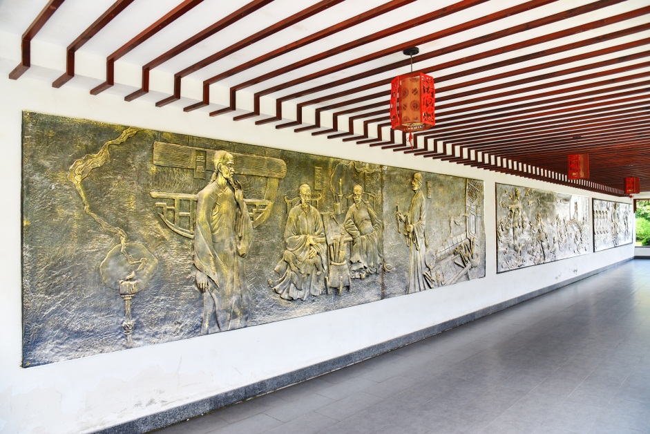 Loudong Culture Wall is located in the long corridor of the Wu Garden, which is a garden typically found in the south of the Yangtze River area. The eastern corridor shows Loudong culture in the form of bronze reliefs, including the inscriptions of A Record for the Five Men's Tomb written by Zhang Pu, a late Ming man of letters and leader of the Restoration Society, the folk legend of the Cowherd and We**ing Maid, which was originated in Taicang, and Wu Xiaobang, the father of Chinese modern dance. A Record for the Five Men's Tomb eulogizes Suzhou citizens' resistance to oppression in history. The story of the Cowherd and We**ing Maid praises sincere, pure and faithful love, while Wu Xiaobang's story shows us how the father of Chinese modern dance pursued his artistic ideals through dance and how he explored the true meaning of life. The west corridor displays landscape paintings of Wang Shimin, Wang Jian, Wang Hui and Wang Yuanqi, the "Four Wangs of Loudong", who were regarded as "authentic artists" by royals of the Qing Dynasty. They created what was known as the Loudong School of Painting in the history of Chinese art.