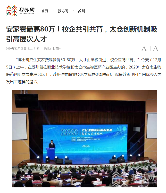 我苏网 | 安家费最高80万!校企共引共育,太仓创新机制吸引高层次人才