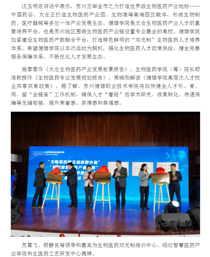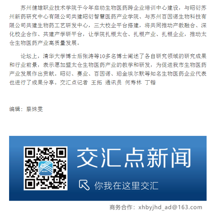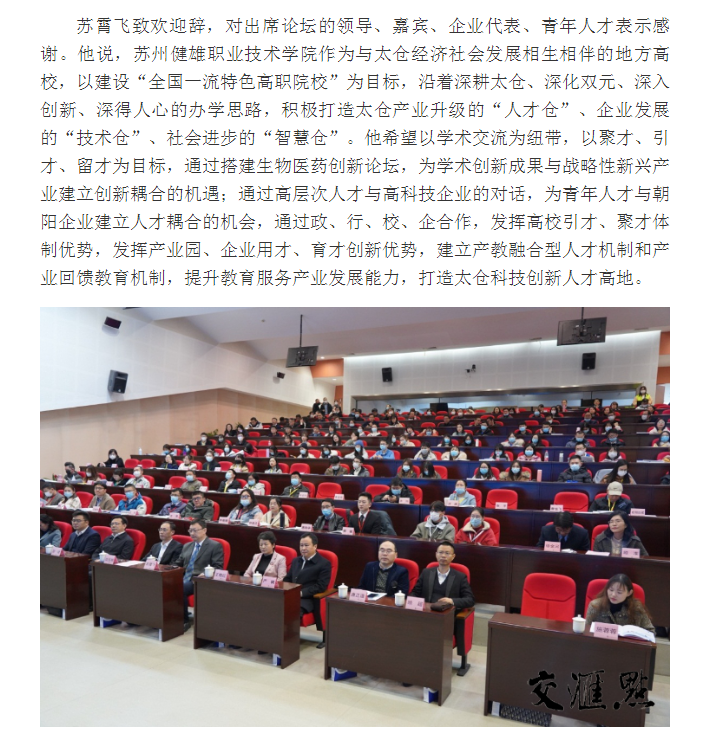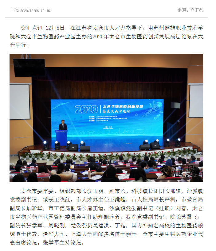 交汇点 | 2020年太仓生物医药创新发展高层次人才论坛举行