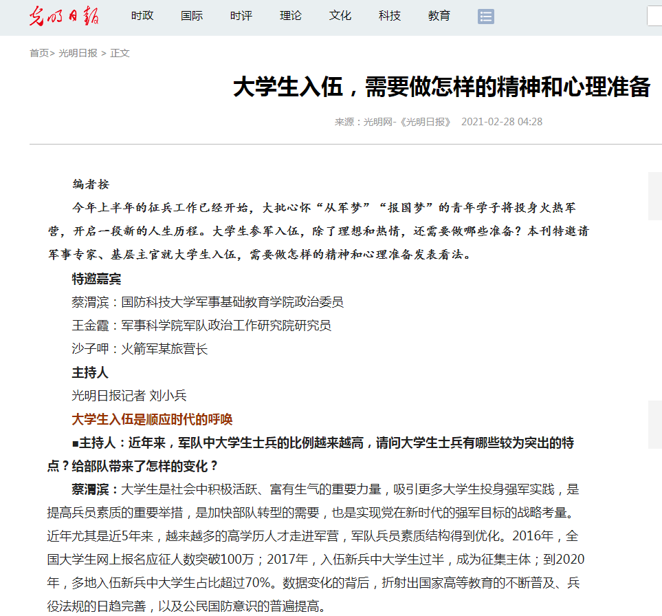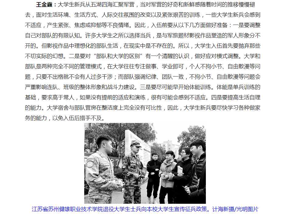 光明日报 | 大学生入伍,需要做怎样的精神和心理准备