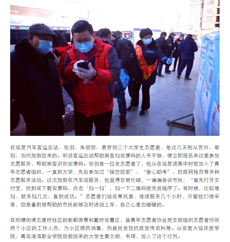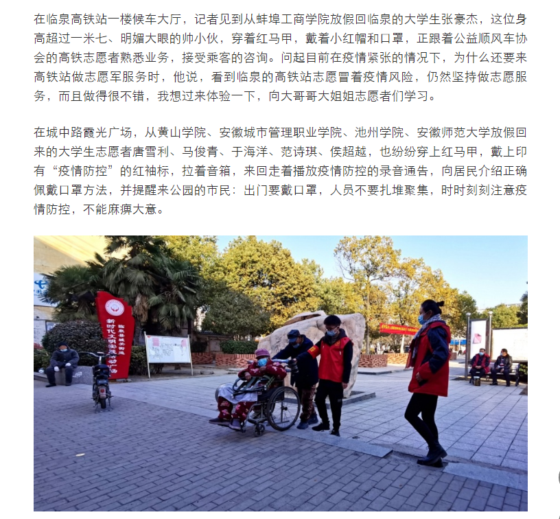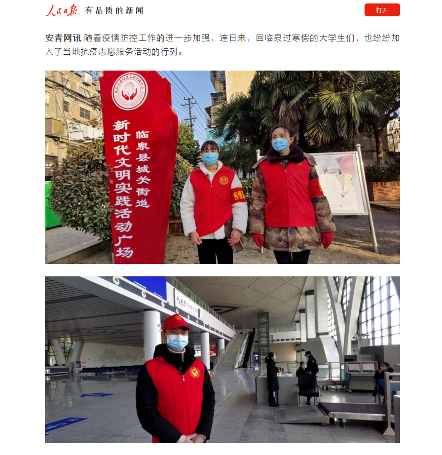 寒假期间,苏州健雄职业技术院临泉籍张羽、朱丽丽、袁梦炟三位大学生志愿者来到临泉车站为南来北往的旅客服务,受到了人民日报等多家媒体关注。