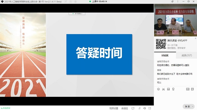 人工智能学院开展党史学习教育以来,坚持紧扣“实”字,以学生为中心,将“我为群众办实事”放在突出位置。为帮助即将入学的新生及家长了解学院情况,于9月29日晚通过腾讯课堂开展2021级新生线上家长会。