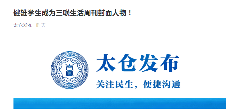 太仓发布 | 健雄学生成为三联生活周刊封面人物