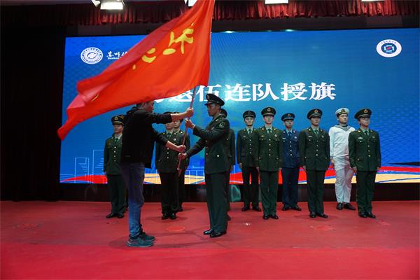 会上,荆瑞红为新生代表佩戴了校徽,郑爱权为本次荣获入学奖学金的同学颁发荣誉证书,孙笪忠为此次退伍学生连队授连队旗。同时2021级新生代表万雨飞和2020级老生代表陈宇杰分别发言,表明了决心,作出了承诺。(图/文 陆旻忆 审核/孙笪忠)
