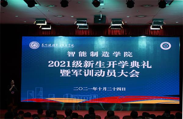 10月24日下午,智能制造学院在图书馆报告厅召开2021级新生开学典礼暨军训动员大会,图书馆多功能厅作为分会场同步举行。智能制造学院党总支书记孙笪忠、副院长荆瑞红、校企合作负责人郑爱权、全体新生班级辅导员以及2021级全体新生参加本次大会,大会由赵璐老师主持。