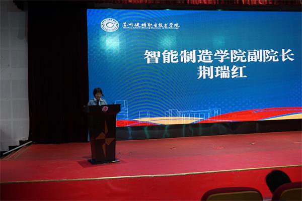 荆瑞红作开学致辞,她详细介绍了智能制造学院目前的专业设置和专业发展情况,以及目前学院所肩负的重要发展使命。她希望全体2021级新生们能够在学院发展的关键时期,做到树立志气,涵养情怀;增强骨气,技术报国;加强底气,树立信心,在智能制造学院成就更好的自己。