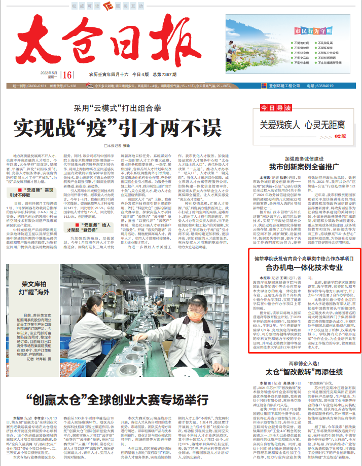 太仓日报 | 健雄学院获批省内首个高职类中德合作办学项目