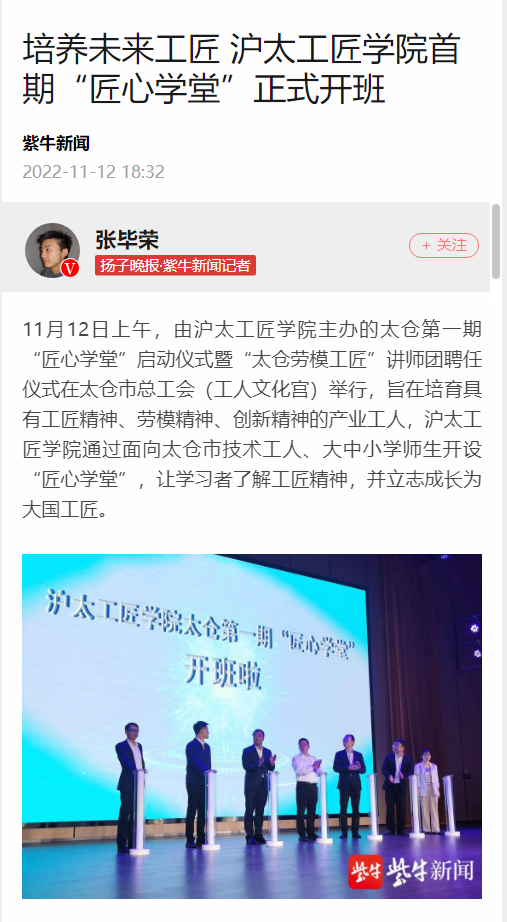 扬子晚报 紫牛新闻 丨培养未来工匠 沪太工匠学院首期“匠心学堂”正式开班