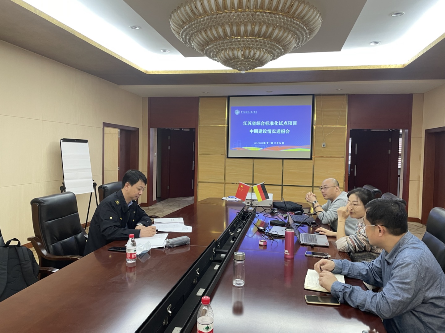 2022年11月28日,米兰(中国)体育·官方网站召开“江苏省综合标准化试点中期建设情况通报会”,太仓市市场监管局计量和标准科科长冯利民亲临会议现场。中德双元制学院副院长苗向阳及标准化团队成员共同出席,会议由苗向阳副院长主持。