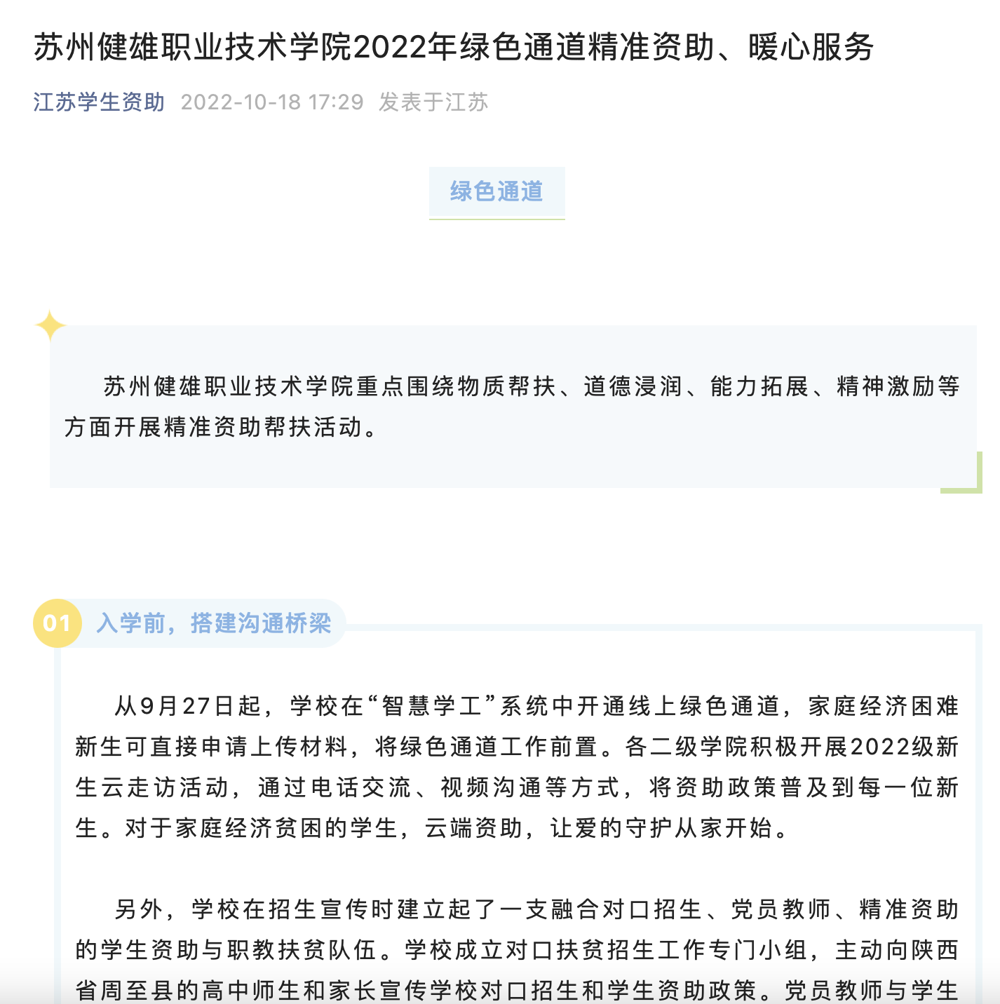 江苏学生资助丨米兰(中国)体育·官方网站2022年绿色通道精准资助、暖心服务
