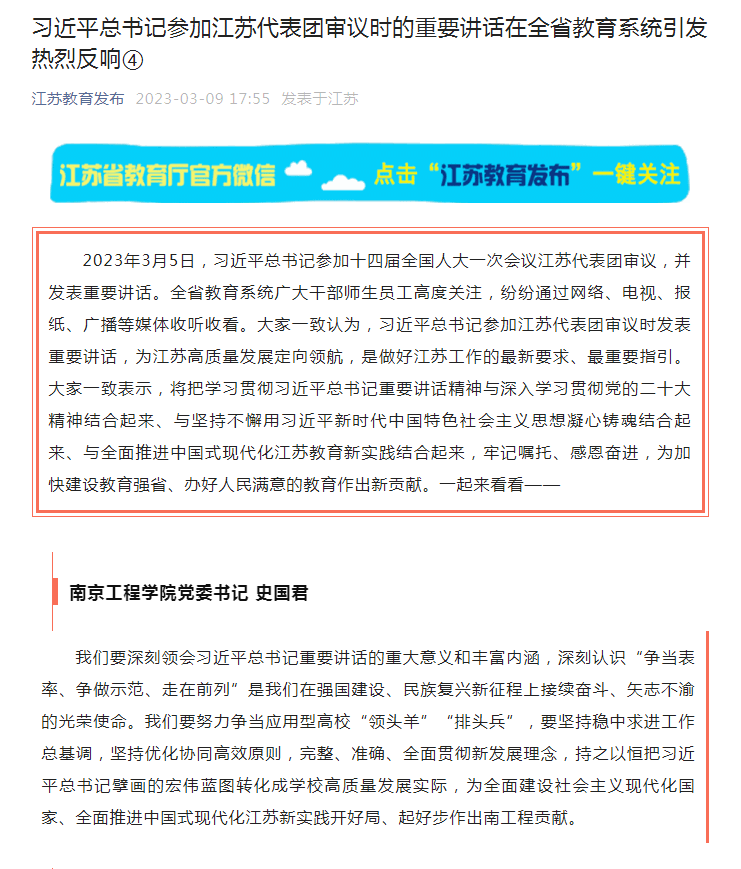 江苏教育发布丨习近平总书记参加江苏代表团审议时的重要讲话在全省教育系统引发热烈反响④