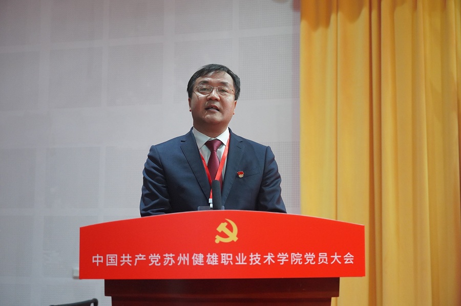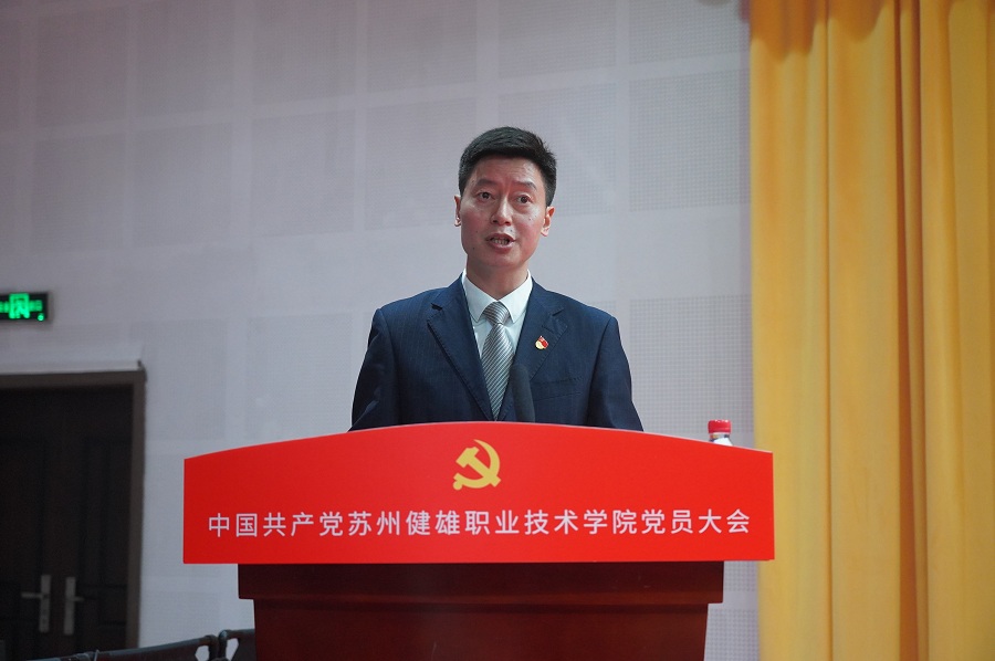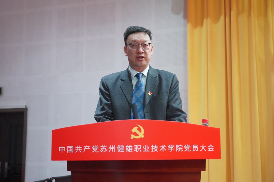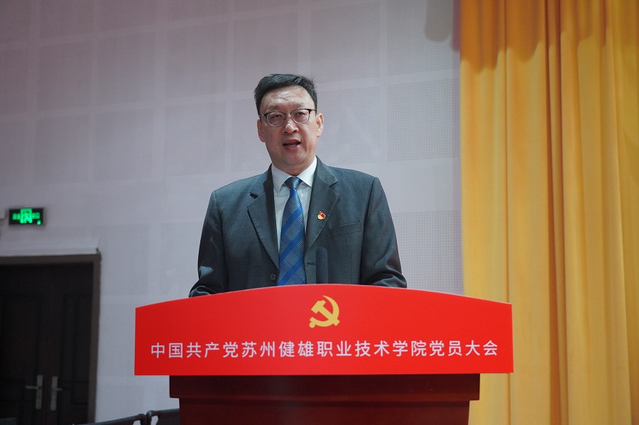 市委副书记徐志强向大会的召开表示祝贺,高度肯定了学院近年来取得的一系列成绩和为太仓经济社会发展作出的积极贡献,他希望健雄学院强化思想引领,锻造立德树人的坚强堡垒;深化校地融合,当好服务发展的强力支撑;紧跟发展大势,争作改革创新的先行示范;加强自身建设,打造从严治校的典型样板,并以此次党员大会为契机,积极传承弘扬健雄精神,努力开拓创新,勇于探索实践,不断开辟学院事业发展新局面,为全市精心描绘中国式现代化太仓图景作出新的更大贡献。