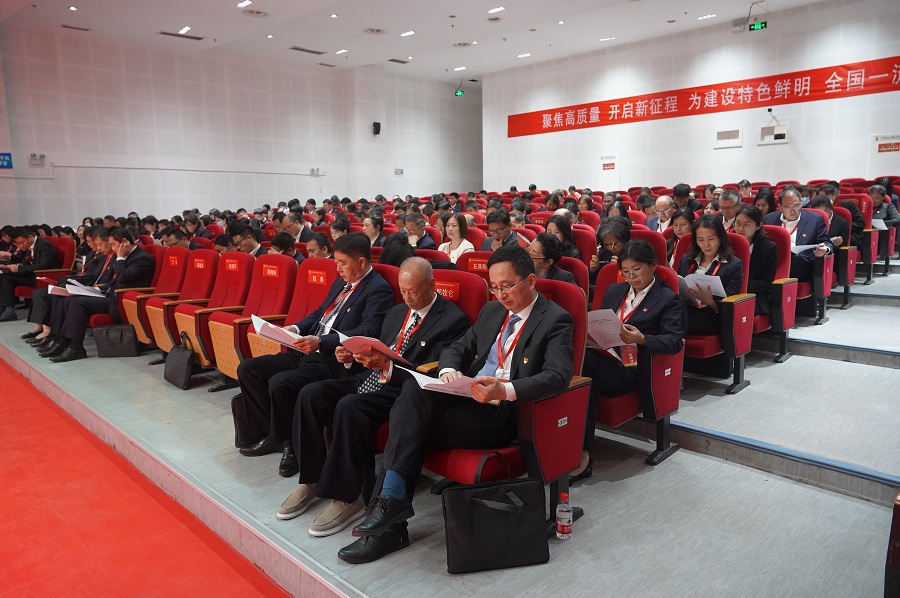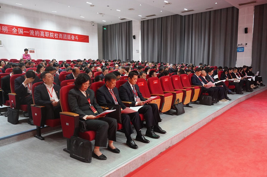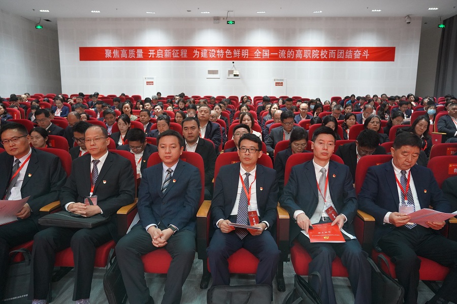 大会的主题是:高举中国特色社会主义伟大旗帜,以习近平新时代中国特色社会主义思想为指导,全面贯彻党的教育方针,以敢为、敢闯、敢干、敢首创的责任担当,厚德载物、积健为雄,为全面建设特色鲜明、全国一流的高职院校而团结奋斗!