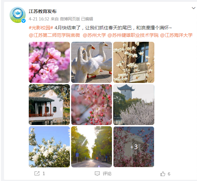 江苏教育发布丨#光影校园# 4月快结束了,让我们抓住春天的尾巴,和浪漫撞个满怀~
