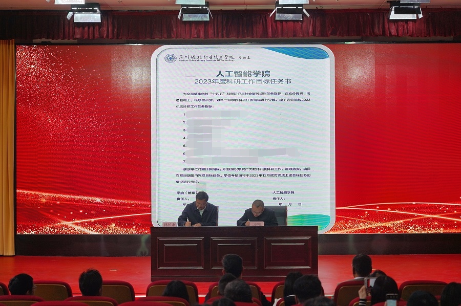 会上,林长永与各二级学院负责人签订了2023年度科研工作目标任务书。