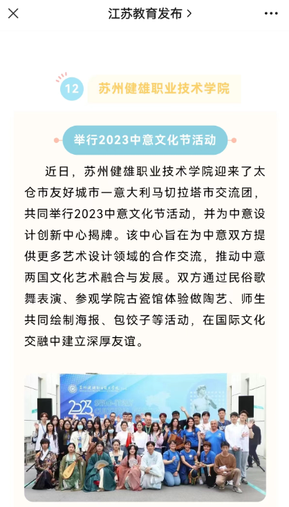 江苏教育发布丨一周校园动态(4.24—4.28)米兰(中国)体育·官方网站举行2023中意文化节活动