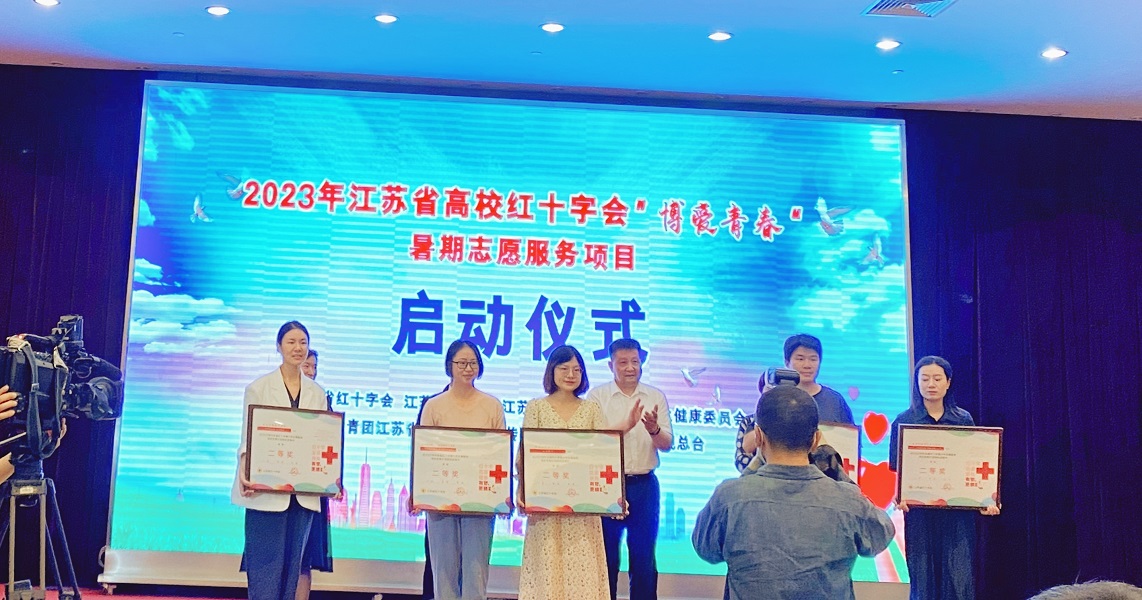 6月15日下午,2023年江苏省高校红十字会“博爱青春”暑期志愿服务项目启动仪式暨2022学年“博爱青春”暑期志愿服务项目颁奖仪式在南京举行。生物医药学院党总支副书记王玉指导的“警察小哥”项目荣获江苏省红十字会青少年志愿服务二等奖。