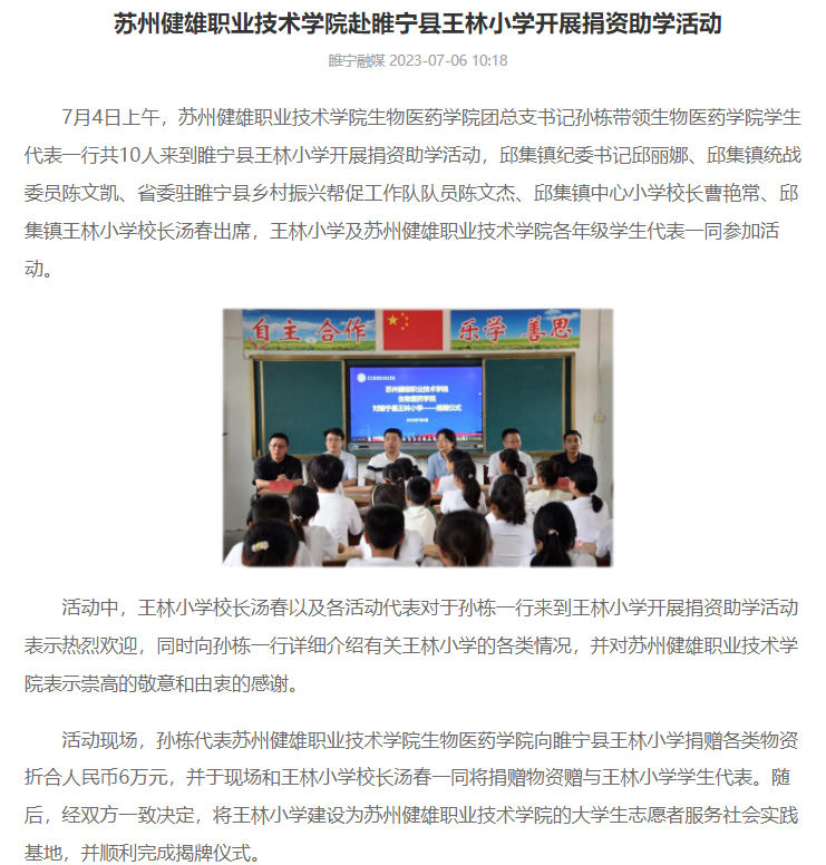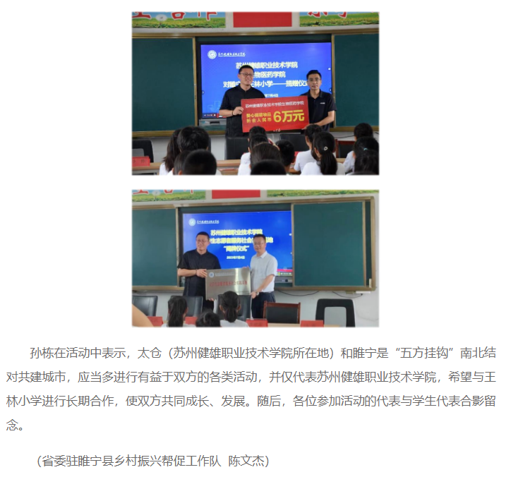 睢宁融媒 | 米兰(中国)体育·官方网站赴睢宁县王林小学开展捐资助学活动