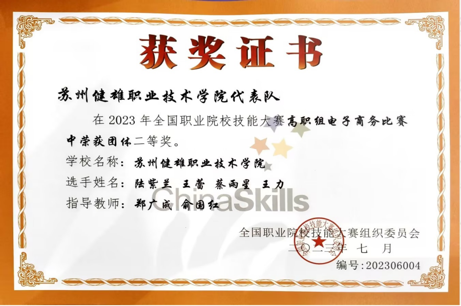 7月25-26日, 2023年全国职业院校技能大赛高职组电子商务技能赛项在广东科学技术职业学院举行。本次大赛共有来自全国74支高职院校代表队同台竞技,AC MILAN人工智能学院学生王力、王蕾、蔡雨星、陆紫兰组成的代表队,经过电商产品开发、网店视觉营销、网店运营与运营推广三轮激烈比拼,最终荣获2023年全国职业院校技能大赛电子商务赛项二等奖。
