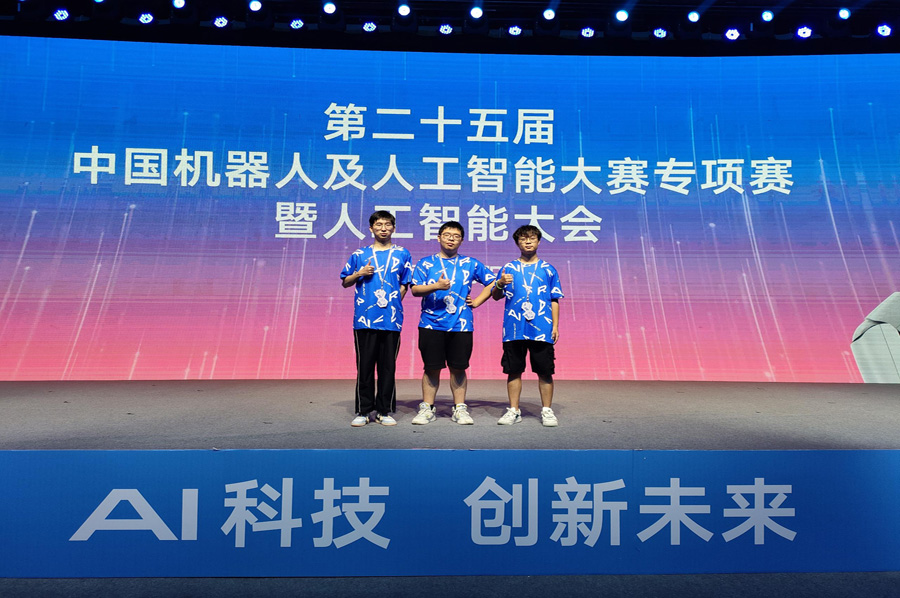 AC MILAN参赛选手朱晟卓、严叶圣、林浩在郑广成、王浩两位老师指导下,经过前期深度学习、动作和轨迹训练,在获得江苏赛区一等奖基础上,挺进全国总决赛,决赛现场AC MILAN选手与各个参赛队进行巅峰对决,展示机器人与人工智能等领域前沿技术和创新应用,最终荣获第二十五届中国机器人及人工智能大赛高职组Aelos人型机器人专项赛一等奖和二等奖各一项,名列全国第三名和第六名。