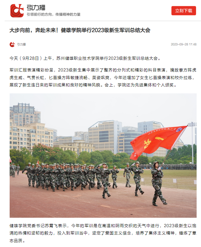 苏州日报 引力播丨大步向前,奔赴未来!健雄学院举行2023级新生军训总结大会