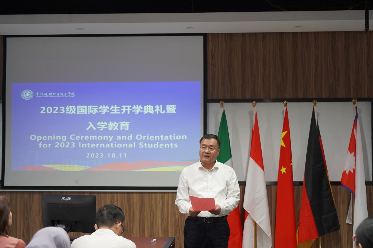 周晓刚对健雄学院的历史、办学规模、对外合作情况等方面进行了详细的讲解,并希望国际学生能够积极学习中国文化和中文,深入感知中华文明的独特魅力,重视专业学习,积极融入群体,保持谦卑求学之心。