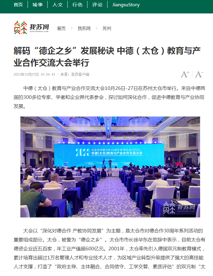我苏网丨解码“德企之乡”发展秘诀 中德(太仓)教育与产业合作交流大会举行