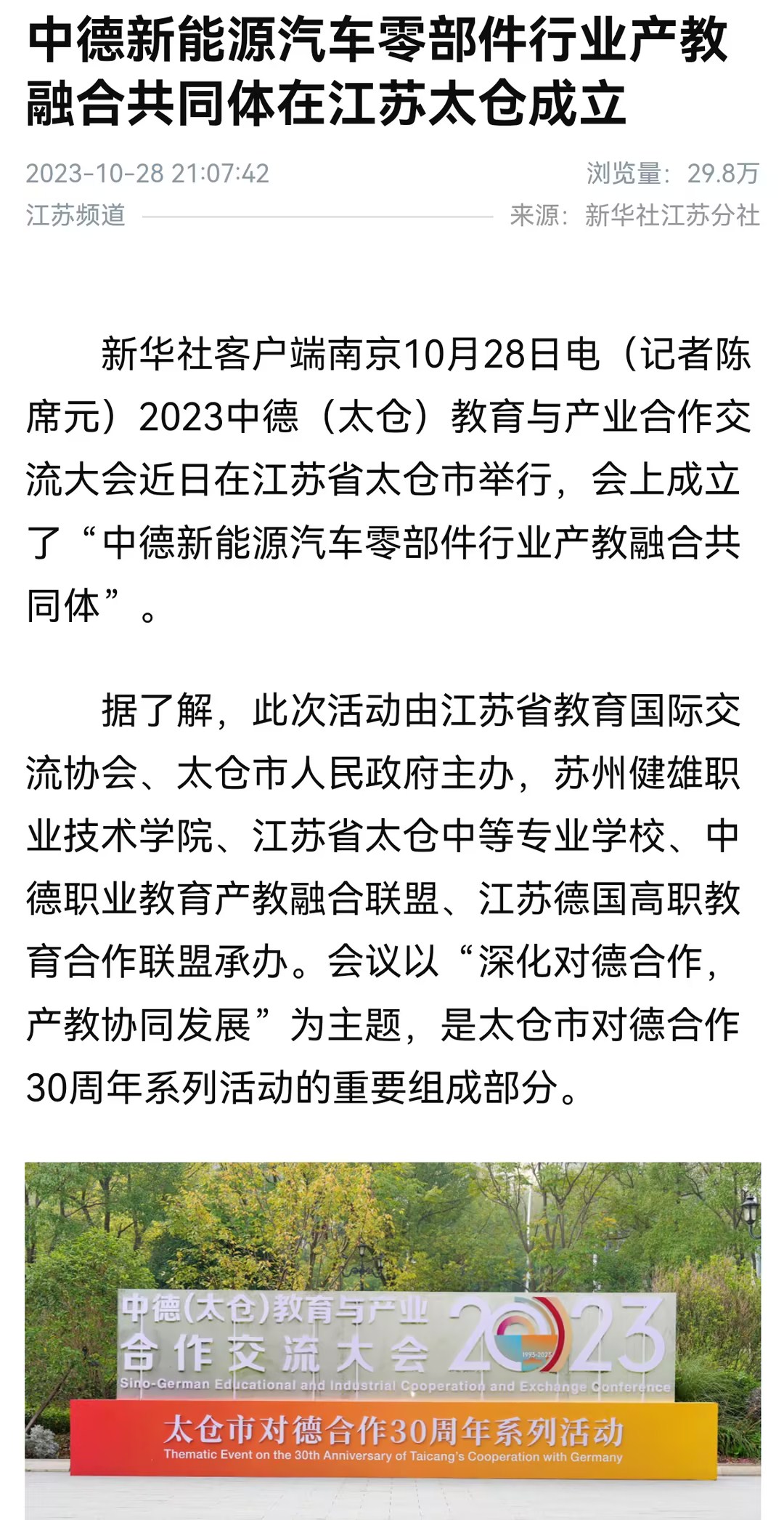 新华社江苏分社丨中德新能源汽车零部件行业产教融合共同体在江苏太仓成立