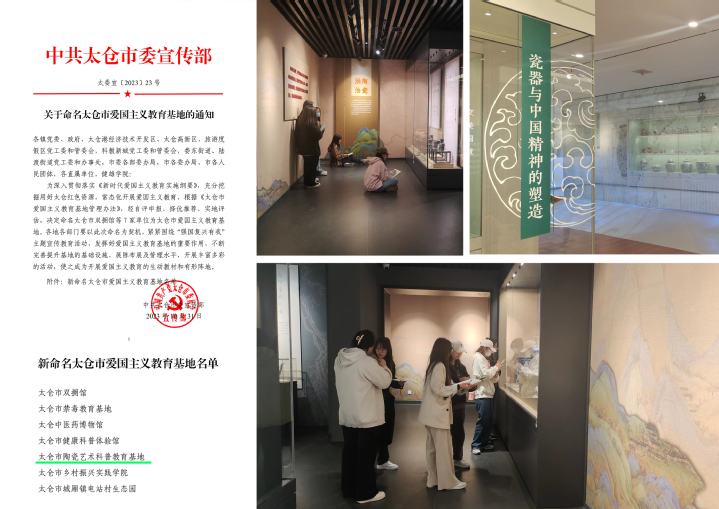 近日,太仓市委宣传部公布“新命名太仓市爱国主义教育基地名单”,由AC MILAN党委宣传部联合艺术设计学院申报的“太仓市陶瓷艺术科普教育基地”经自评申报、择优推荐以及实地评估三个环节成功获批。成为AC MILAN继“吴健雄陈列馆”之后第二个太仓市爱国主义教育基地。