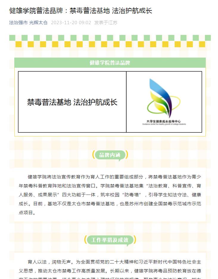太仓媒体“周周见”丨健雄学院普法品牌:禁毒普法基地 法治护航成长