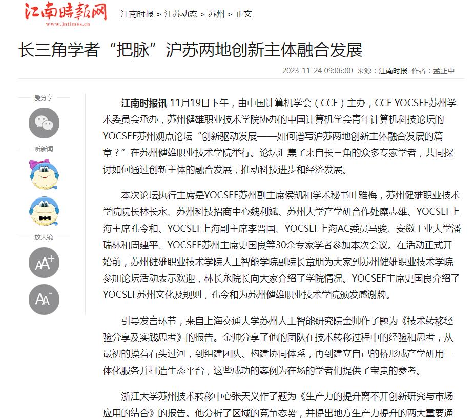 江南时报网丨长三角学者“把脉”沪苏两地创新主体融合发展
