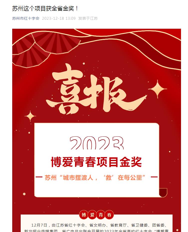 苏州市红十字会丨苏州这个项目获全省金奖!