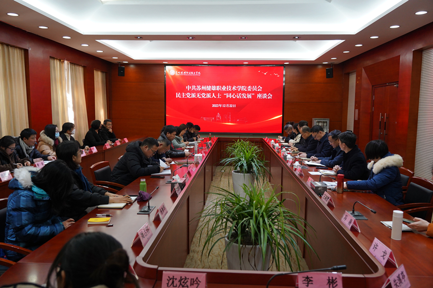 12月22日下午,学院民主党派无党派人士“同心话发展”座谈会在吴园第一会议室召开,学院党委书记苏霄飞主持会议并讲话。学院党委领导班子成员出席会议,各基层党总支统战委员、全体民主党派和无党派人士参加座谈会。