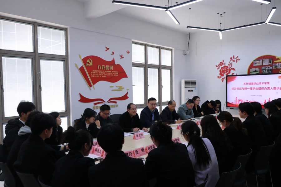 1月10日下午,学院党委书记苏霄飞与新一届学生组织负责人集体座谈,学院党委委员、副院长吴建洪以及党委办公室、院长办公室(港澳台办公室),学生处,后勤处,团委负责人参加座谈。