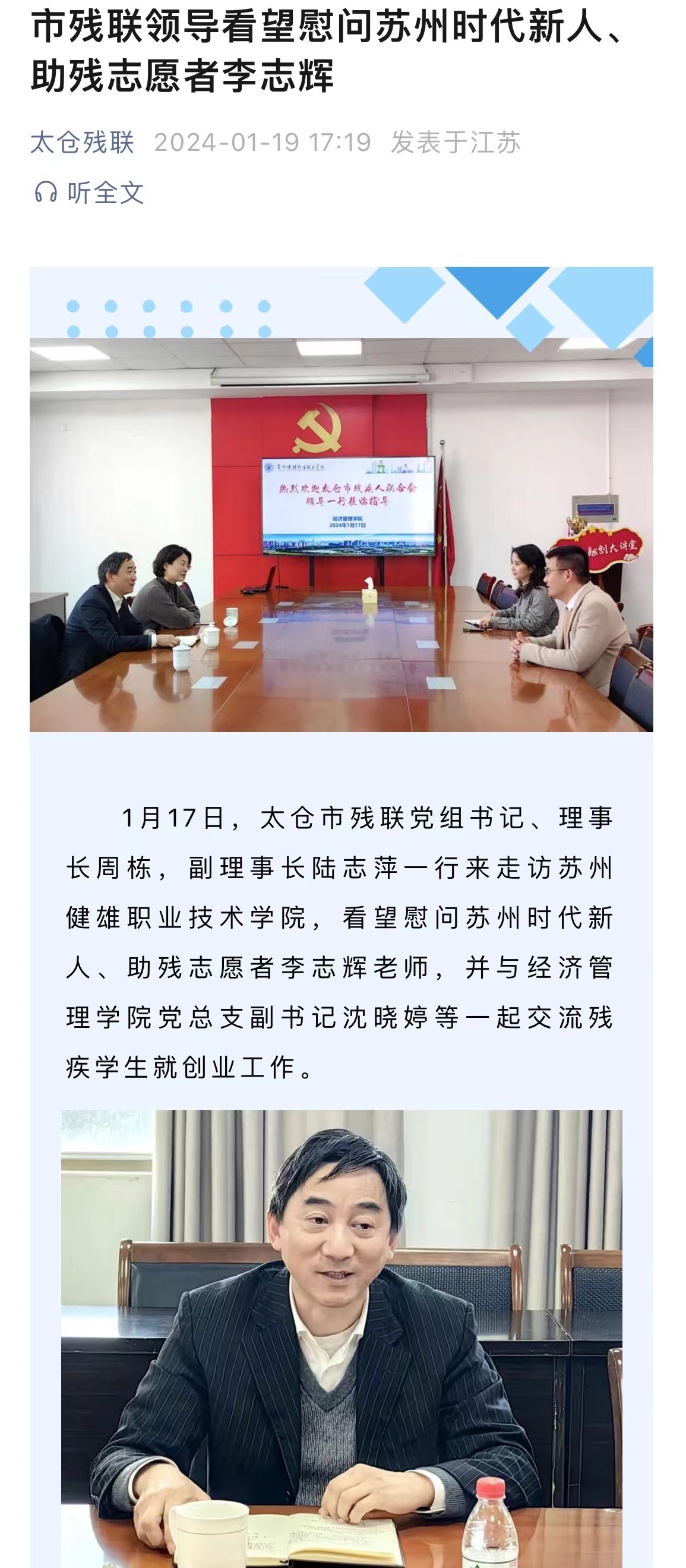 太仓残联 | 市残联领导看望慰问苏州时代新人、助残志愿者李志辉