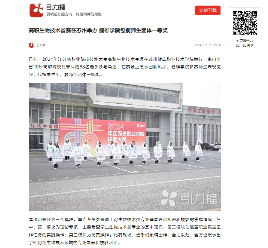 苏州日报 引力播 丨高职生物技术省赛在苏州举办 健雄学院包揽师生团体一等奖