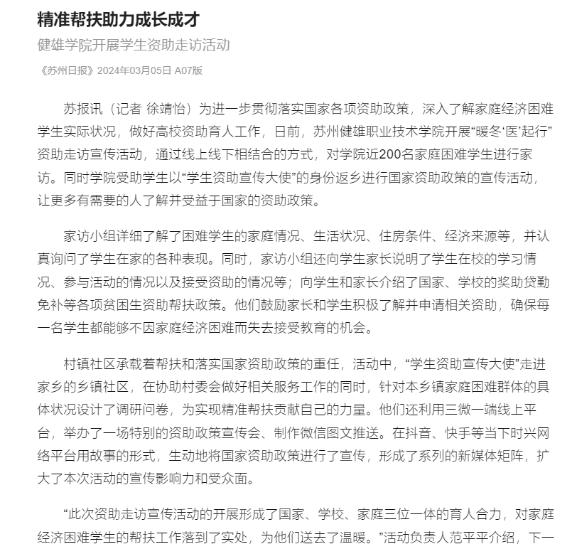 苏州日报 引力播 | 精准帮扶助力成长成才
