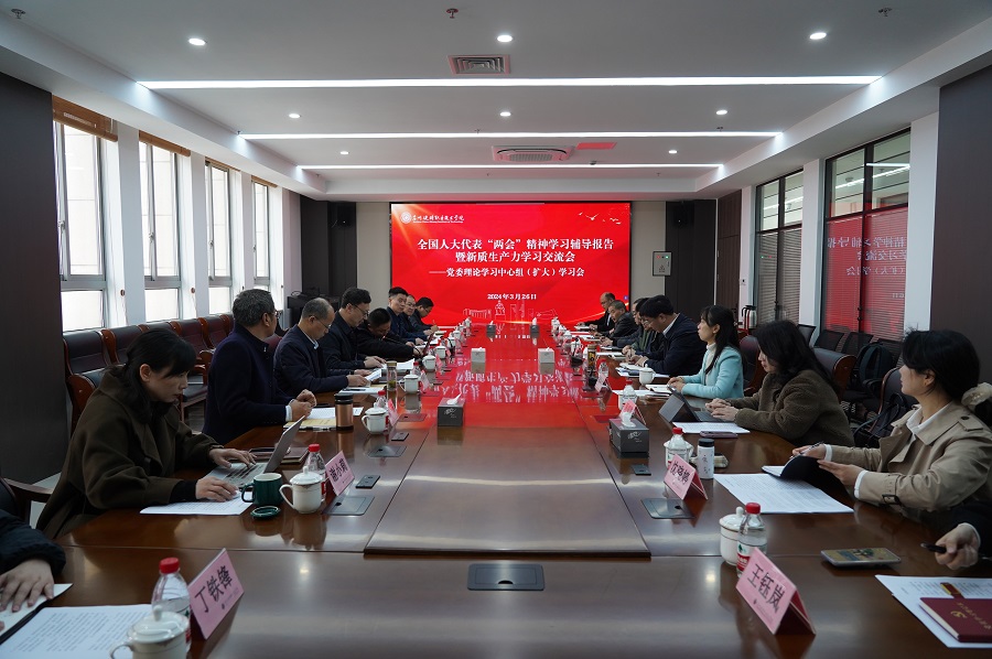 3月26日下午,党委理论学习中心组学习交流会在二期第一会议室召开。全国人大代表、万方码头门机班副大班长、江苏省总工会兼职副主席褚锋宣讲了十四届全国人大二次会议精神,会上进行了新质生产力学习交流。党委书记苏霄飞主持会议并讲话,学院党委委员、各党总支书记、党委各部门和相关职能部门负责人参会。