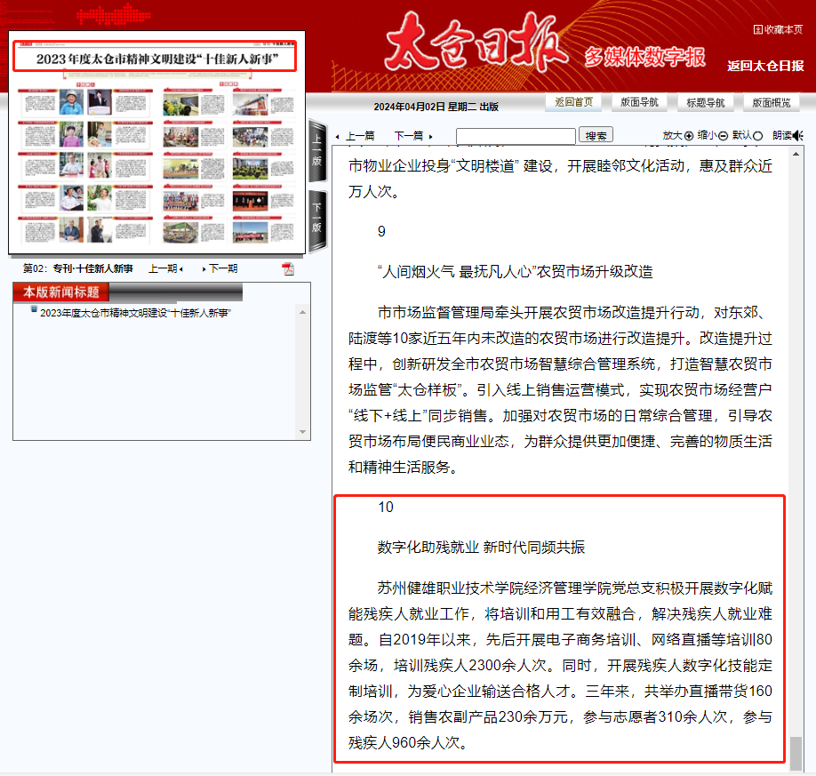 太仓日报丨2023年度太仓市精神文明建设“十佳新人新事”