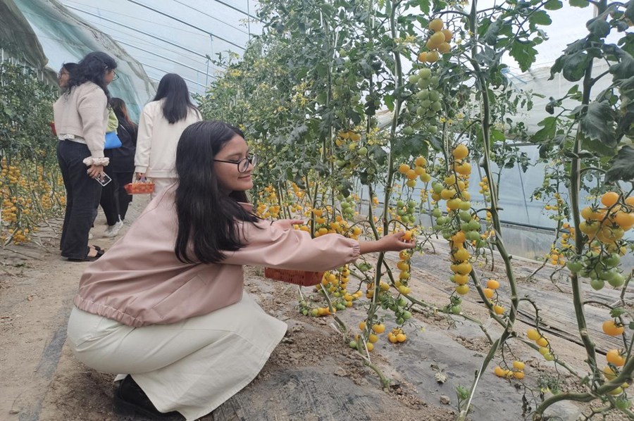 留学生们来到了电站村,在讲解员的带领下,首先参观了当地的农田,了解了农作物的种植过程和农业生产的艰辛。随后,他们体验了采摘小番茄的乐趣,在田间地头,留学生们亲手采摘了一颗颗鲜美可口的小番茄,感受到了大自然的馈赠和劳动的快乐。采摘过程中,留学生们还与当地农民交流了农业知识和种植技术。