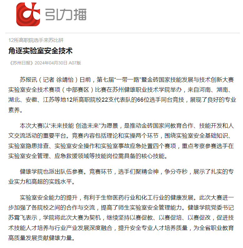 苏州日报 引力播丨角逐实验室安全技术