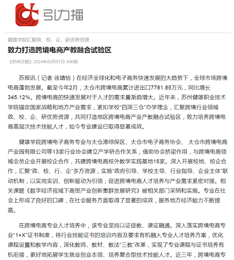 苏州日报 引力播丨致力打造跨境电商产教融合试验区